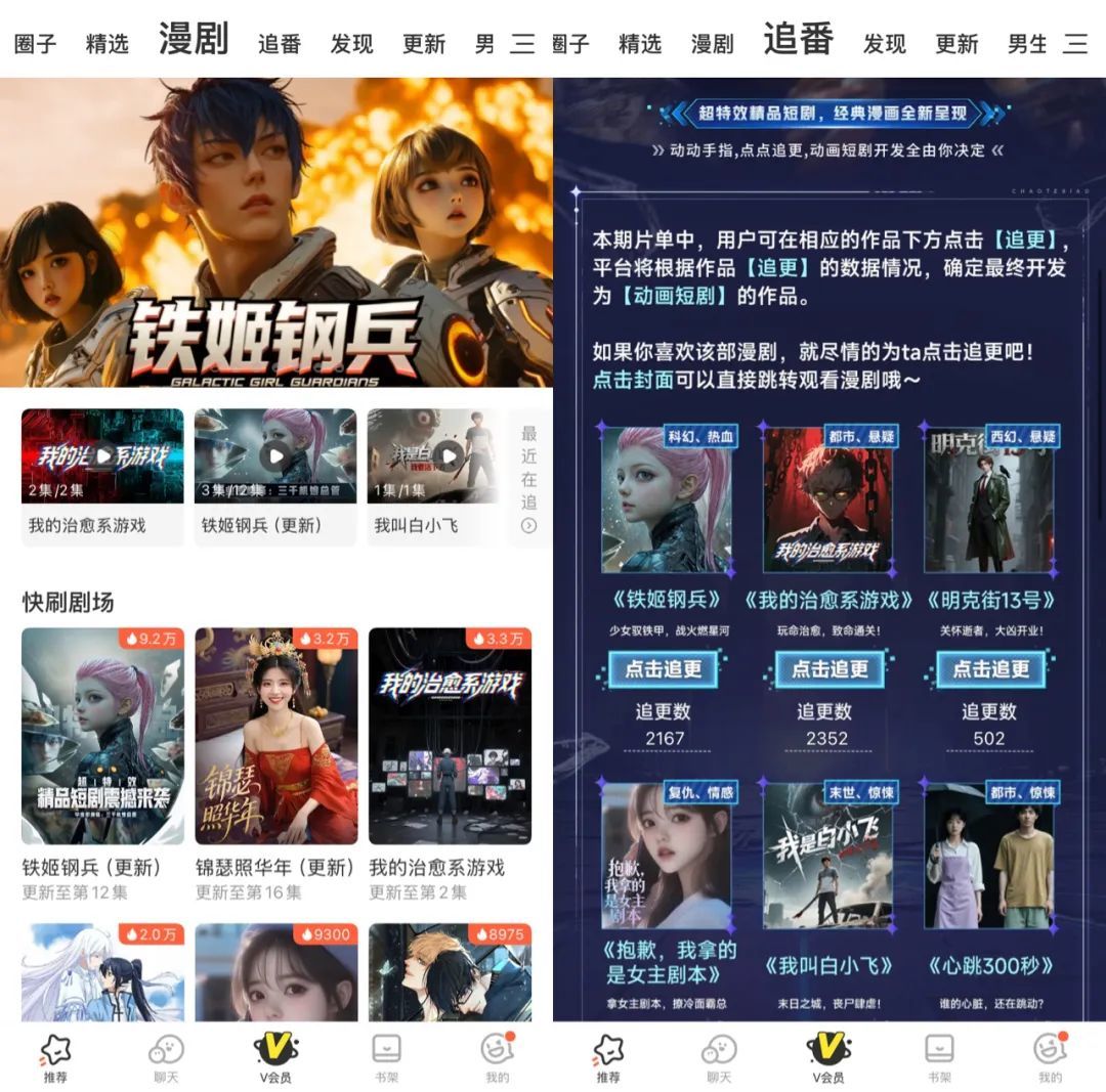 去年,AIGC短剧曾经在业内掀起了一股AI动画短剧之风。只不过,目前短视频平台上的AI动画短剧,更多只是可灵、即梦等工具展示实力的“炫技样片”,并未真正形成创作者与垂直受众的内容生态。相比之下,拥有完善创作生态、庞大受众基础的国漫平台,倒是可以插上AI的翅膀,一键加速“动画化”的脚步。