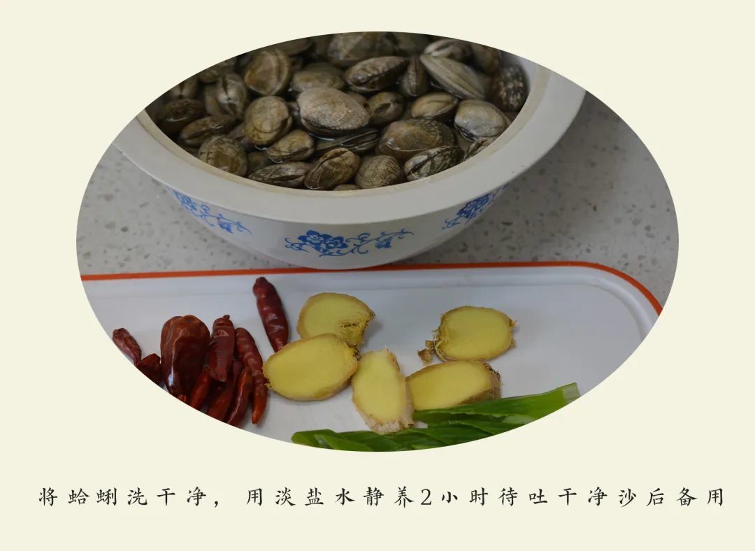 1,将蛤蜊洗干净,用淡盐水静养2小时待吐干净沙后备用