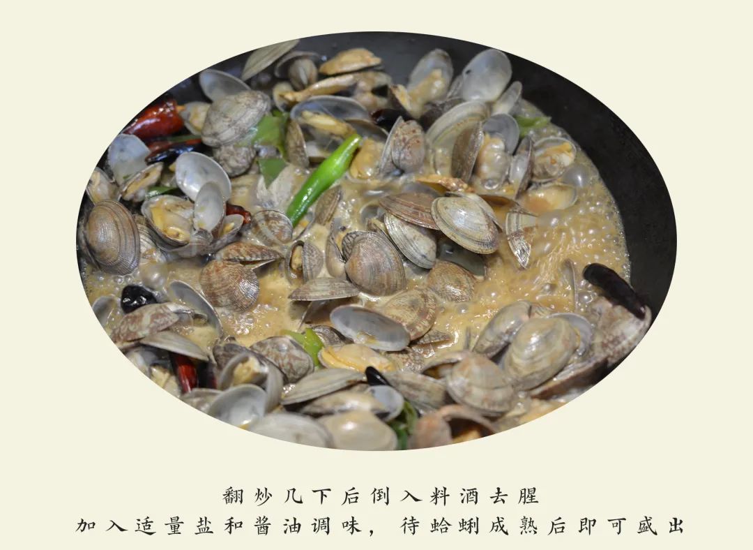 4,芳草几下后倒入料酒去腥,加入适量盐和酱油调味,待蛤蜊成熟后即可盛出