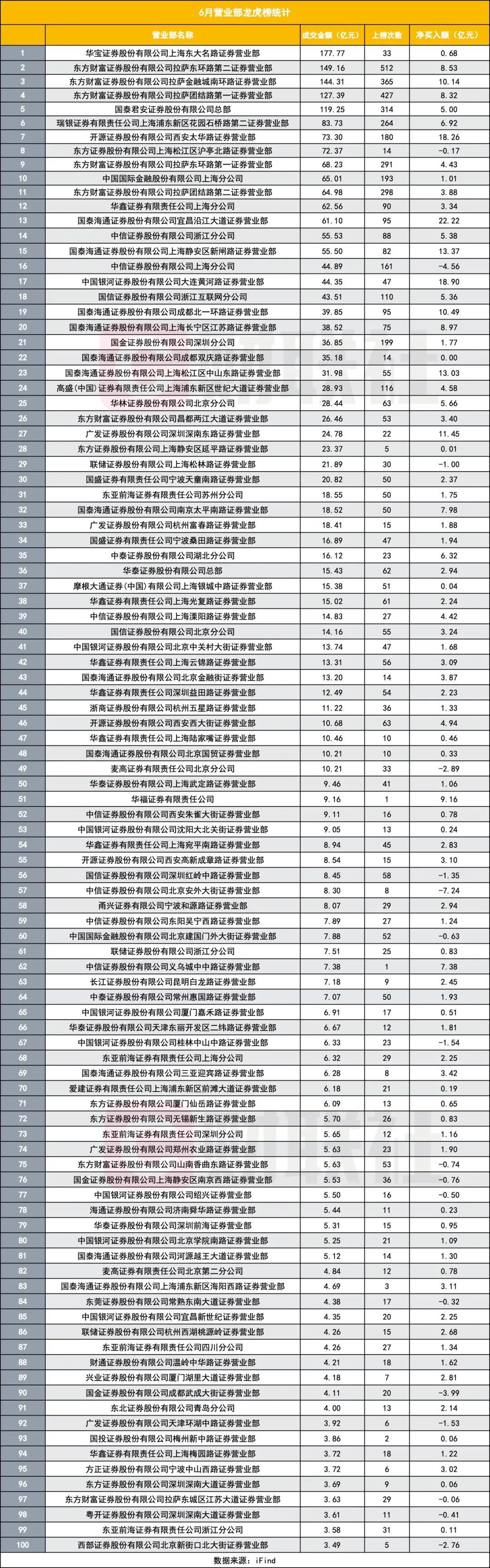 6月华宝东大名夺魁,外资加仓,夏季行情助推部分营业部崛起