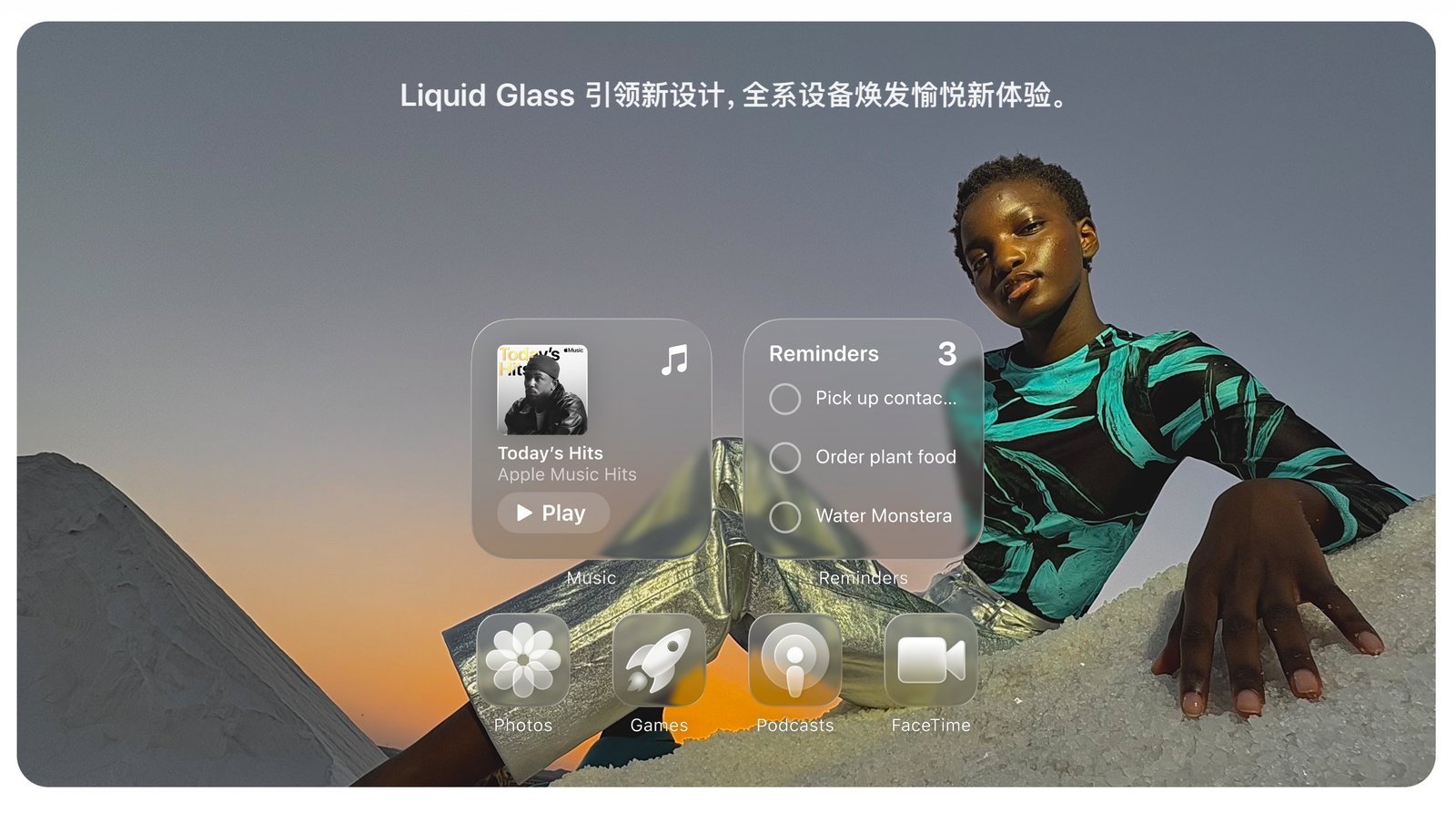 还有锁屏界面,得益于 Liquid Glass 设计,在 iPhone、iPad、mac 上的锁屏界面也更有表现力,其中在 iPhone 上还可以将时间拉长,并且照片中的人物还能以 3D 效果生动鲜活地呈现出来。