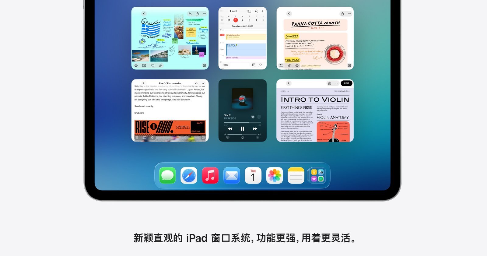 要实用性大大提升的还得是 iPadOS 26,新增了窗口功能,可以任意调整应用窗口的大小,位置也可以随意摆放。不仅如此,iPadOS 26 还能像 mac 一样使用控制按键来排列成易于浏览的布局,让使用更称心如意。