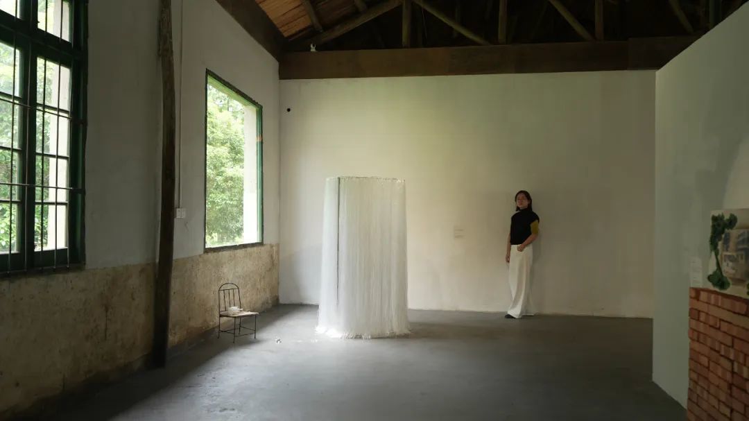展览空间是一栋改造的老厂房,它跟我小时候生活的棉纺厂是很像的,木构屋顶,斑驳的墙皮,墙面留下了过去洪水的痕迹。