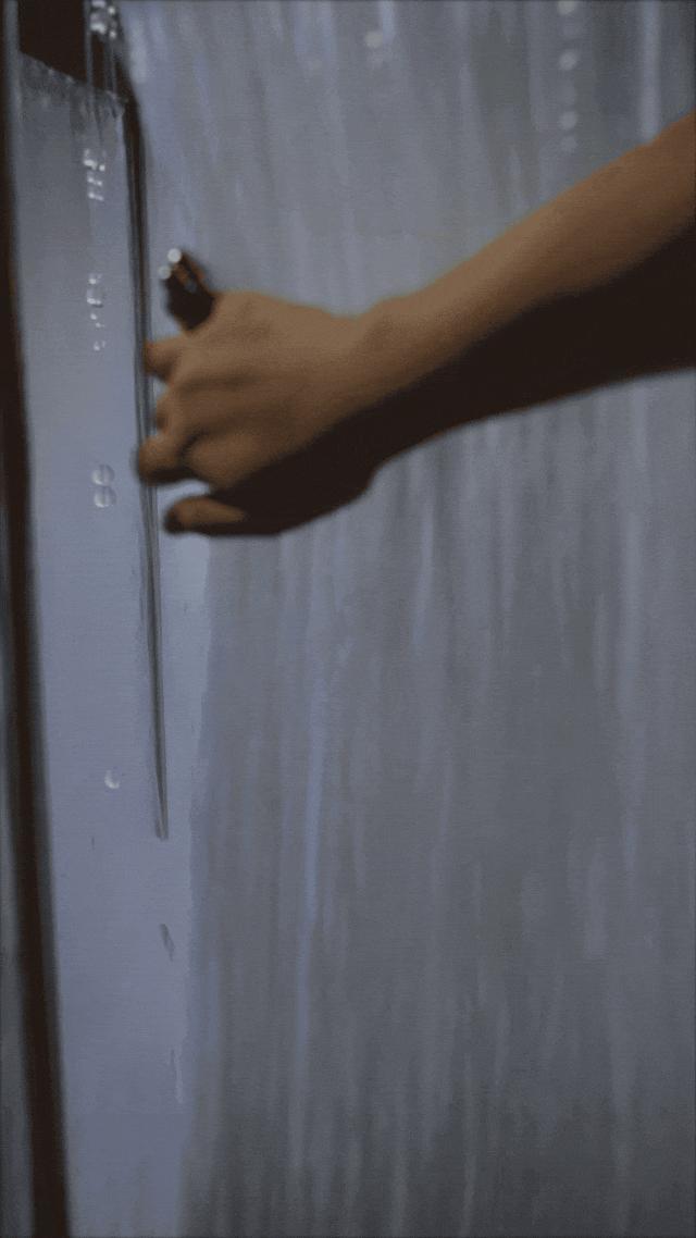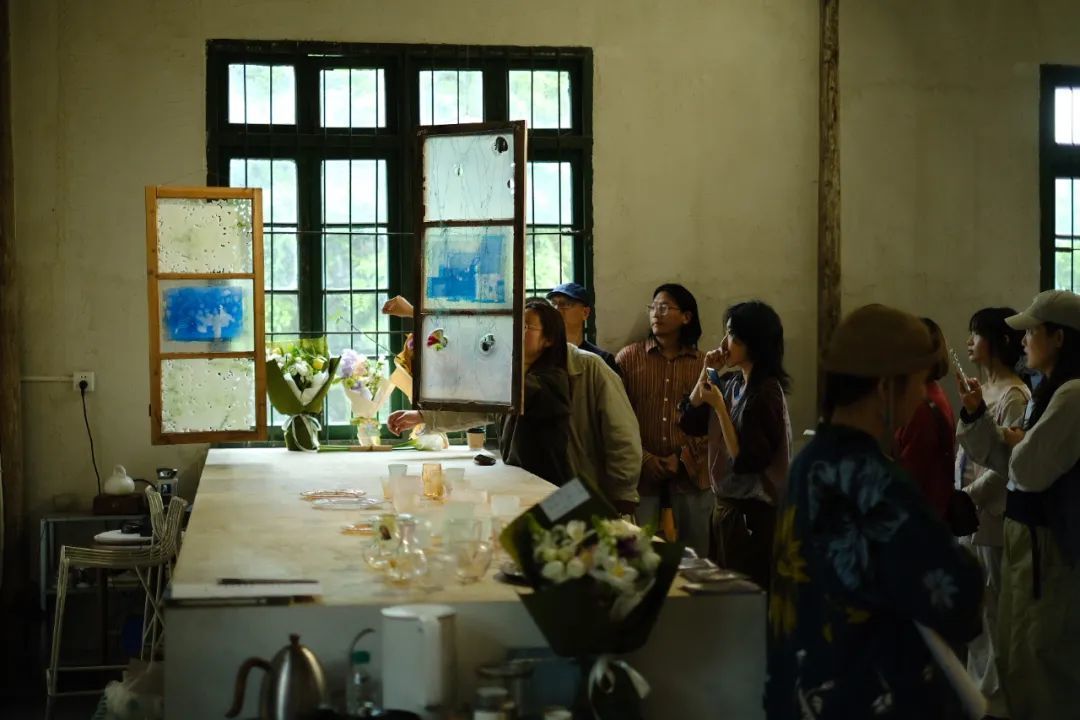 景德镇740厂的老厂房区,工人们朝八晚五的脚步在斑驳的红色砖墙间穿梭,覃钰玲的玻璃工作室就隐匿其中——一间再普通不过的厂房,墙面上留着两道清晰的水位线,像年轮般记录着两次洪水的造访。在覃钰玲第一次来到这间厂房的时候,这里满是淤泥。