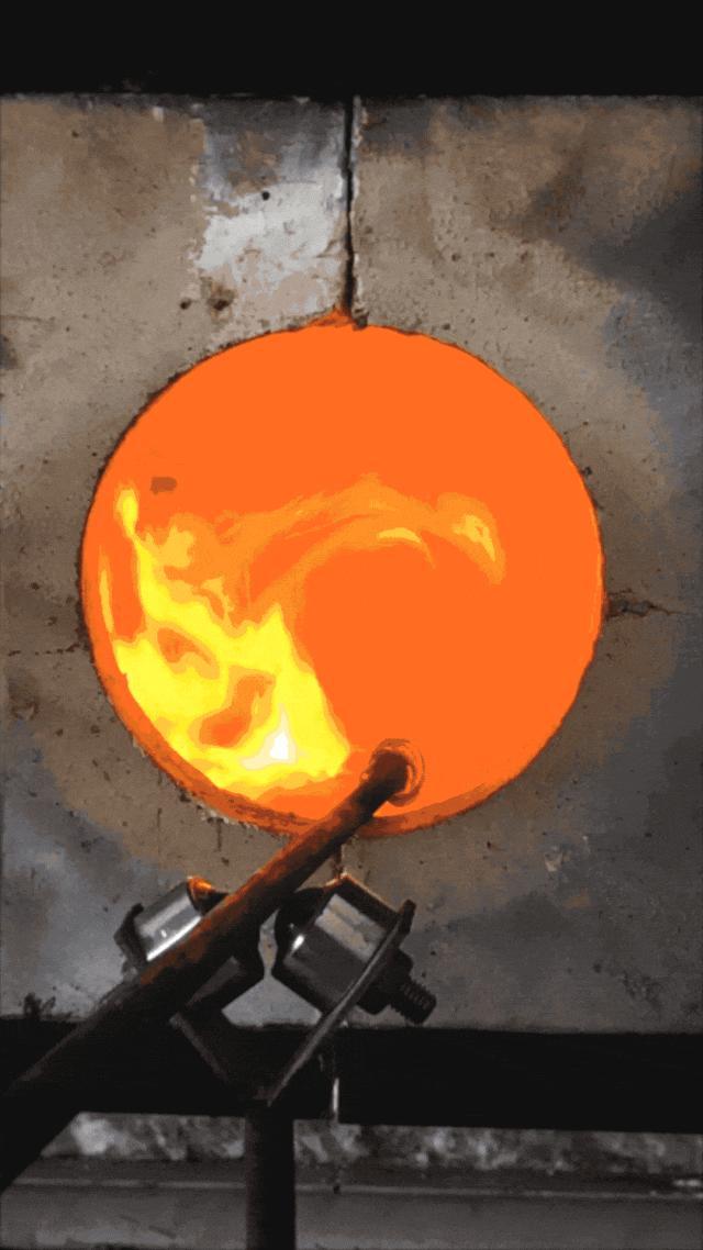 做吹制的时候,我只有想它就好了。到后来其实它更多是身体的肌肉记忆,你把脑袋屏蔽掉,让你的手去做。平时做的时候我会跳舞,我在那晃来晃去的,就放空,但是我的眼睛和身体在盯着它,我看它在炉膛里面。