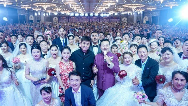 值得一提的是,此次论坛现场还精心组织了集体婚礼环节,为整个活动增添了温馨浪漫的氛围。乐坛 “模范夫妻” 付笛生和任静夫妇亲临现场,为37对幸福爱人送上美好祝福,并深情献唱经典曲目《知心爱人》、《你是幸福的 我是快乐的》,将现场气氛推向高潮。并由王琨老师致证婚词,表达了对新人们的美好祝愿,希望他们余生携手相伴,共筑幸福美满的家庭。