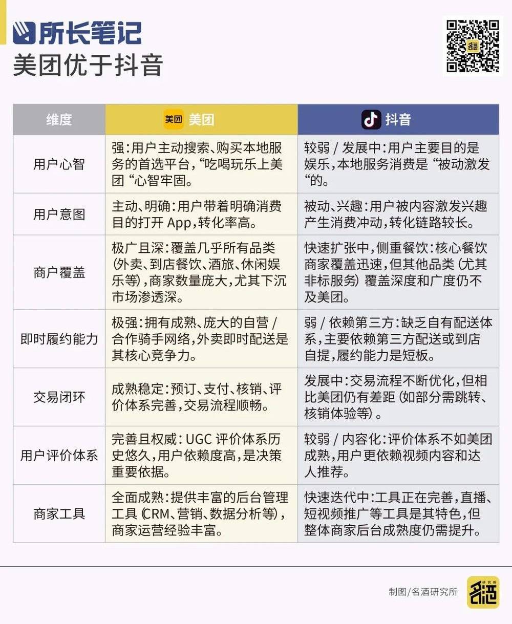 据了解,当下,抖音正加速补课履约(如试点自建配送团队、整合第三方运力),美团则在全力突围内容(加大短视频、直播投入)。但二者的基因差异,让它们在短期内无法彼此取代。即抖音难以快速复制美团由百万级骑手所构建的履约网络,以及用户对“点外卖/找店”用美团的条件反射;而美团也难以迅速追上抖音的内容创造力、用户沉浸时长,以及基于兴趣的推荐效率。