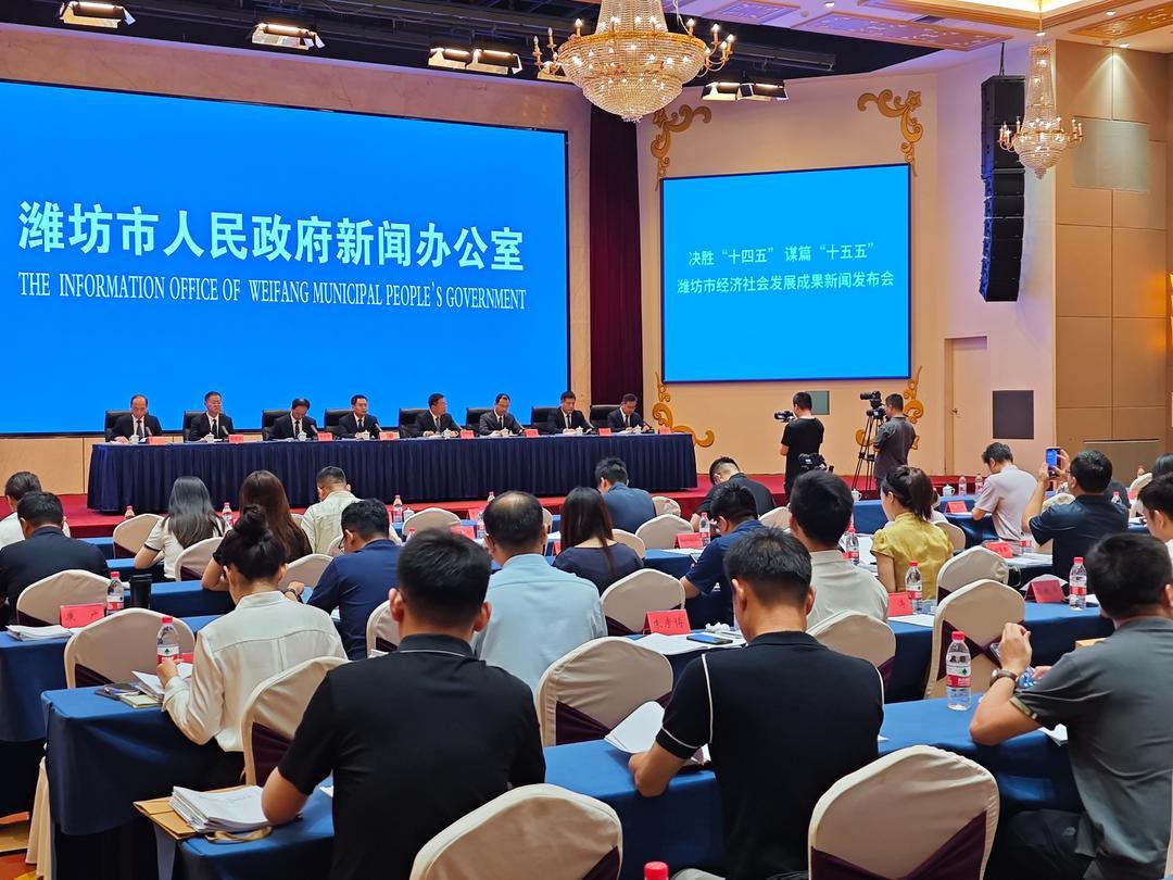 7月4日,潍坊市人民政府新闻办公室举行“决胜‘十四五’谋篇‘十五五’”潍坊市经济社会发展成果新闻发布会。发布会围绕建设“一座人民满意的城市”,发布白皮书,回顾“十四五”期间潍坊经济社会发展取得的新亮点、新成效,展望“十五五”发展新方向、新目标,现场展览成果图片。潍坊市工信局、市农业农村局、市交通局、市教育局、市文化和旅游局、市海渔局、市卫健委7家市直部门负责人分别介绍有关情况并回答记者提问。