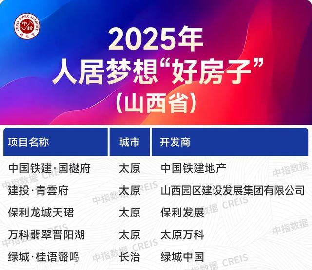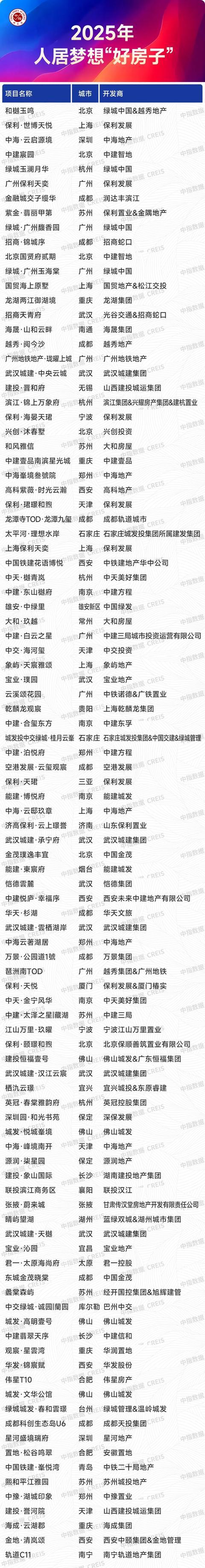 2025年,为进一步促进房地产行业高质量发展,中指研究院启动2025年人居梦想“好房子”研究与优选工作,最终在全国范围内优选出100个『2025年人居梦想“好房子”』项目。