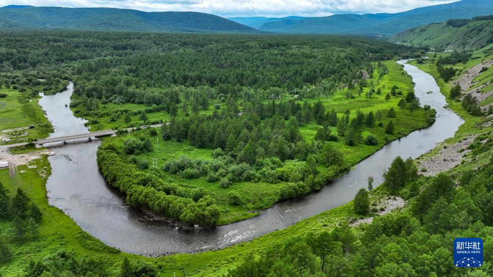 7月5日拍摄的流经内蒙古阿尔山国家森林公园的哈拉哈河(无人机照片)。
