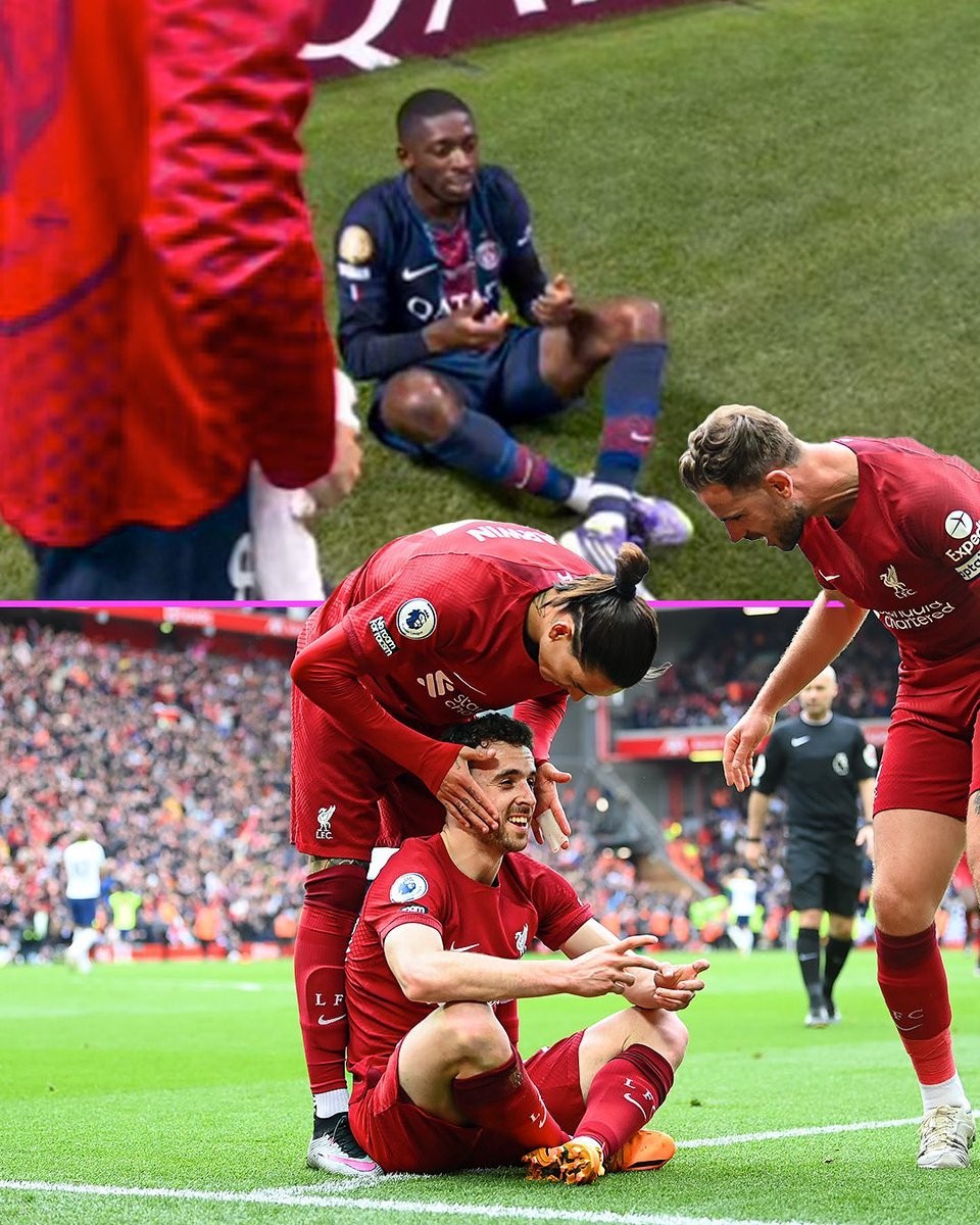 在进球后,登贝莱坐在草地上做出手拿游戏手柄的庆祝动作,以此缅怀因车祸不幸去世的若塔,若塔也曾在进球后做出了同样的庆祝动作。