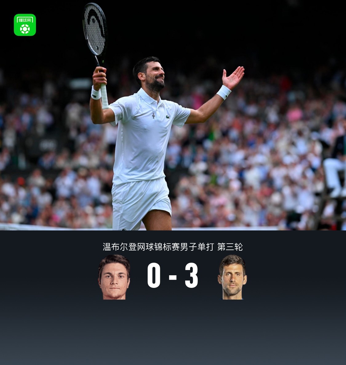 北京时间7月6日,2025年温布尔登网球锦标赛展开了男子单打第三轮的一场较量,德约科维奇3-0横扫同样来自塞尔维亚的凯茨玛诺维奇成功晋级。