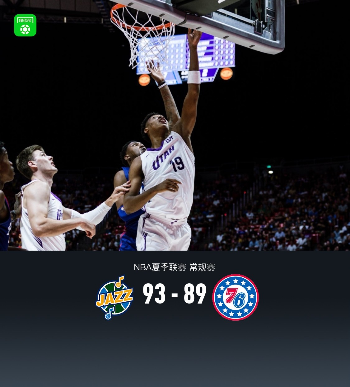 北京时间7月6日NBA夏季联赛 ,犹他爵士对阵费城76人。半场爵士52-4376人,最终爵士93-8976人。