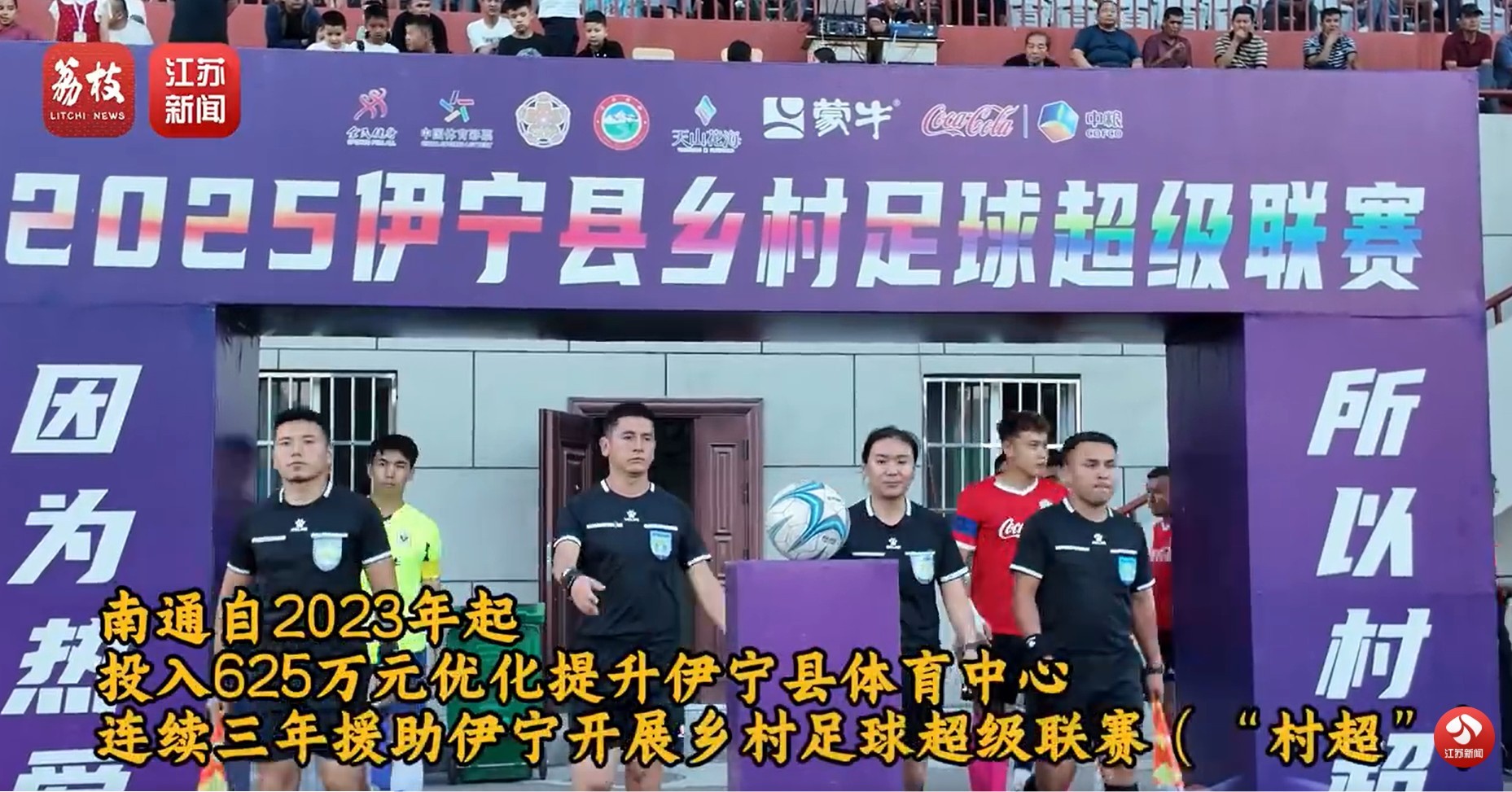 据江苏新闻报道,南通自2023年起,投入625万元优化提升伊宁县体育中心,援助伊宁开展乡村足球超级联赛(“村超”)。