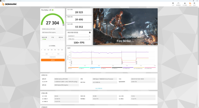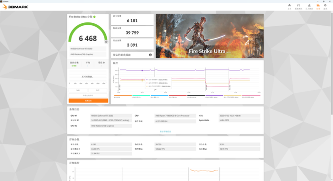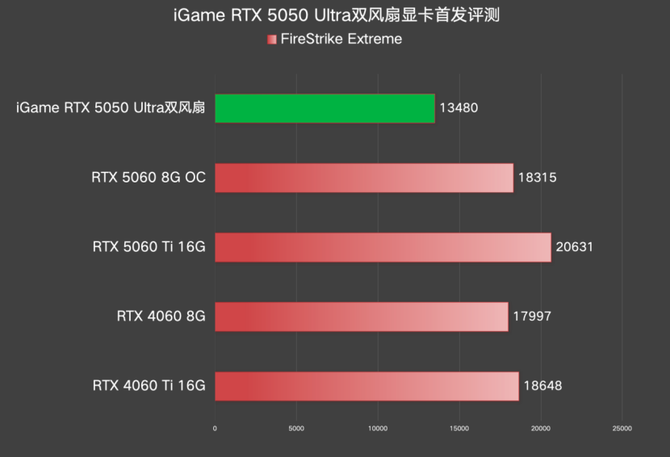 DX11游戏性能测试的Firestrike测试项目上,这个项目主要考量的是DX11游戏下对应的1080P、2K和4K游戏性能表现,并且给出硬件CPU和GPU的综合分数,本次我们只取GPU部分进行解读,可以看到在这个测试中,iGame RTX 5050 Ultra双风扇显卡表现出色,能够提供出色的游戏性能支持。