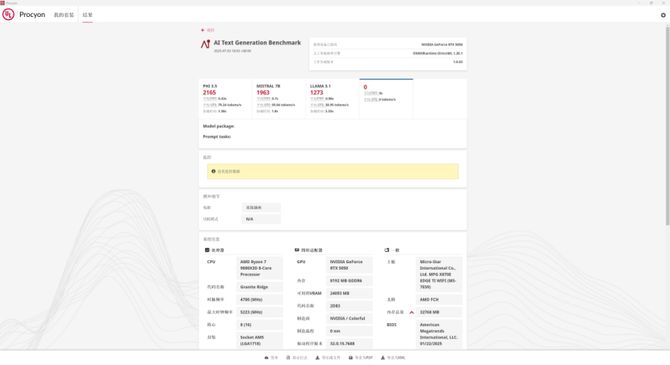 随着大语言模型的兴起,非常多用户开始进行本地的大模型部署,我们选择UL的AI Text Generation Benchmark进行测试可以看到,基本上主流的模型都能提供不错的性能支持,响应速度和生成速度都不错,并且8GB的显存也能实现最基本的要求。