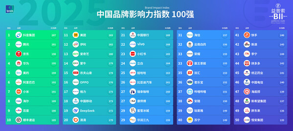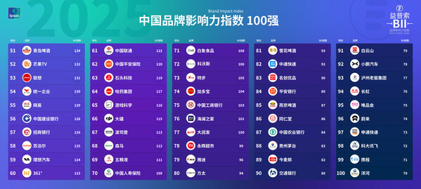 2025年度中国品牌影响力指数100强榜单揭晓