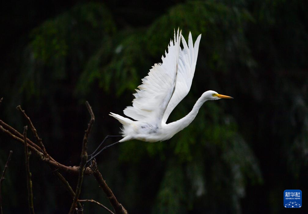 这是7月7日在昆明滇池海洪湿地公园拍摄的白鹭。