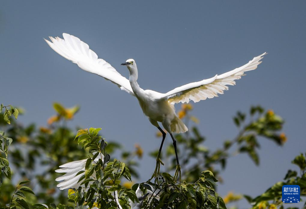 盛夏时节,昆明滇池海洪湿地公园水草丰茂、鱼虾资源充足,吸引大批白鹭、苍鹭等鸟类聚集。近年来,该湿地成为鹭鸟重要的栖息繁殖地,群鸟翩飞,呈现出一派高原湿地的和谐生态景观。