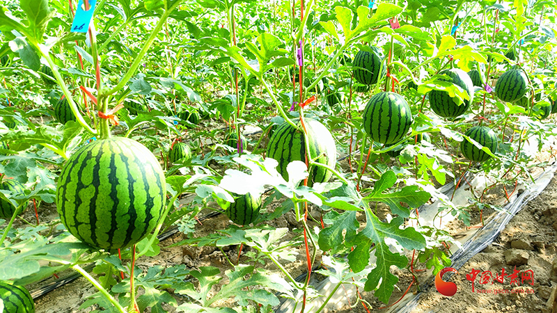 “你看这西瓜,再过一周就全卖空了!”种植户段金玲蹲在瓜垄间,指尖轻叩着表皮光滑的沙漠西瓜。她经营的4座温室大棚里,西瓜和西红柿全程采用有机肥培育,病虫害靠生物防治技术解决。每到成熟季,自驾采摘的游客与慕名而来的收购商让田垄间热闹非凡。