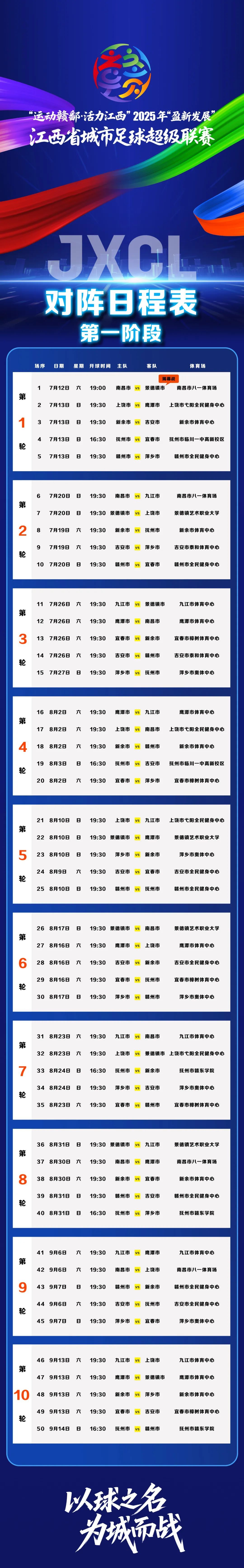 据了解,本次赛事从7月12日开赛,11月2日决出冠亚军,历时近4个月,先后将进行66场比赛,其中揭幕战即将于7月12日晚7点在南昌市八一体育场打响,对阵双方是南昌队和景德镇队。赛事同时发布了赛事杯、赛事logo以及赛事口号。