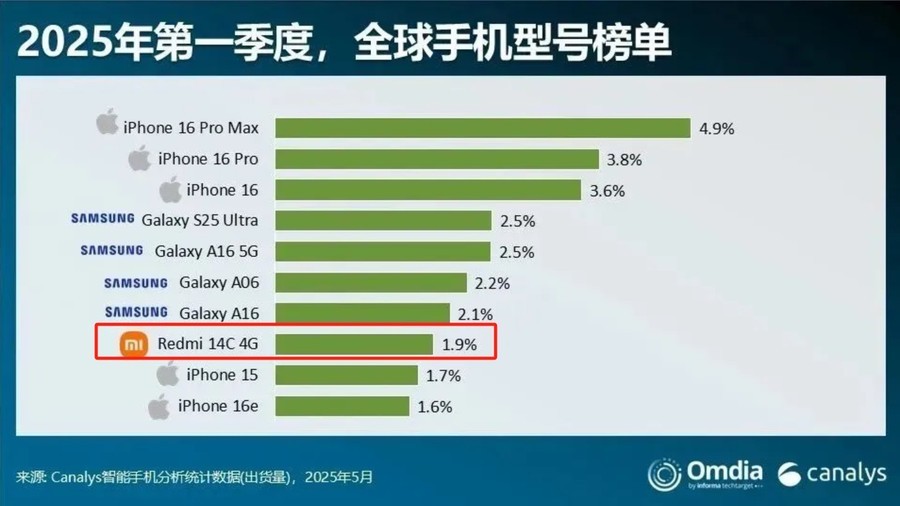 REDMI 数字C系列这几年从没让小米失望过,REDMI 12C、13C、14C连续多次杀进全球销量榜前十,上一代REDMI 14C更是唯一杀进前十的国产手机,狠狠证明了“低价高配”依然有市场,而不是所有人都在追求“微曲屏+四曲屏+钛合金边框+AI虚拟人推流”。