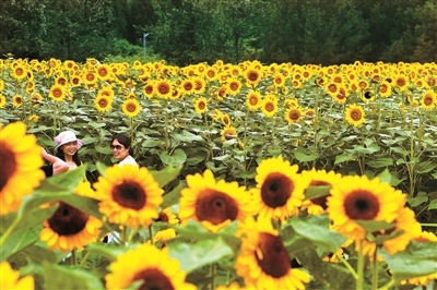 近日,奥林匹克森林公园北园的向日葵花海进入盛花期,吸引众多市民前往观赏拍照。这片花海位于北园“花田野趣”景区,占地近百亩,是北京城区内规模最大、品种最全的向日葵观赏区。据介绍,奥森向日葵最佳观赏期在7月上中旬。