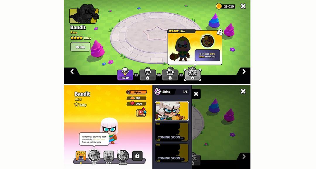 之后,Supercell通过引入小队成员皮肤解决了缺乏装饰性物品的问题,这些皮肤可通过游戏内优惠和专门的皮肤货币获得——这个系统类似于《荒野乱斗》。唯一从消耗品主导的过去保留下来的是宝箱倍增器,它可以提升赛后奖励。