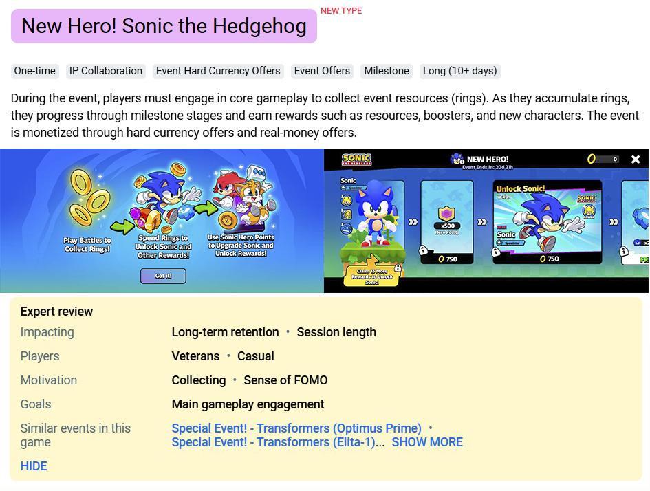 在6月17日结束这项研究时,Supercell推出了与《刺猬索尼克》的全新合作,这个跨越几代人的标志性角色自然成为了合适的IP跨界选择。索尼克成为了第一个“速度型”英雄:考虑到游戏中总共只有六个英雄类别,这使他的到来感觉重要且立即产生影响。他的技能让他变身为超级索尼克,为整个小队提供临时无敌和速度提升。此外,现在还可以使用纳克鲁斯和塔尔斯作为新的小队成员!