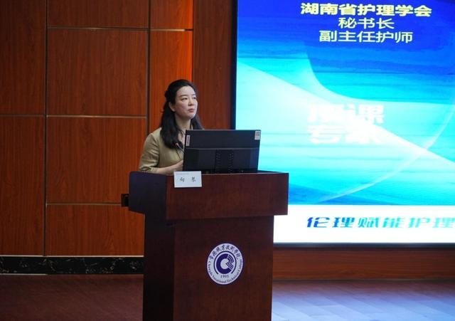 湖南省护理学会护理伦理专业委员会主任委员何平平教授聚焦ICU护士这一领域,开展了“伦理氛围与ICU护士组织公民行为的关系:情绪智力与道德脱离的链式中介作用”的研究分享,为提升ICU护理质量提供了全新的视角与理论支撑。湖南师范大学王卫红教授以“医务人员对AI在临床实践应用中的伦理担忧:一项质性研究的系统评价”分享了人工智能在护理伦理领域的发展、陈丹教授对于“新时代护理伦理的多维挑战与实践路径”展开了论述。