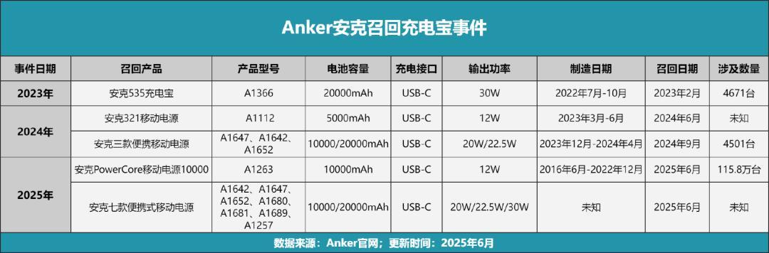 没过几天,国产移动电源龙头安克公司也发布了召回公告,宣布在国内召回7款共计71万台充电宝,而在美国市场更是召回115.8万台。