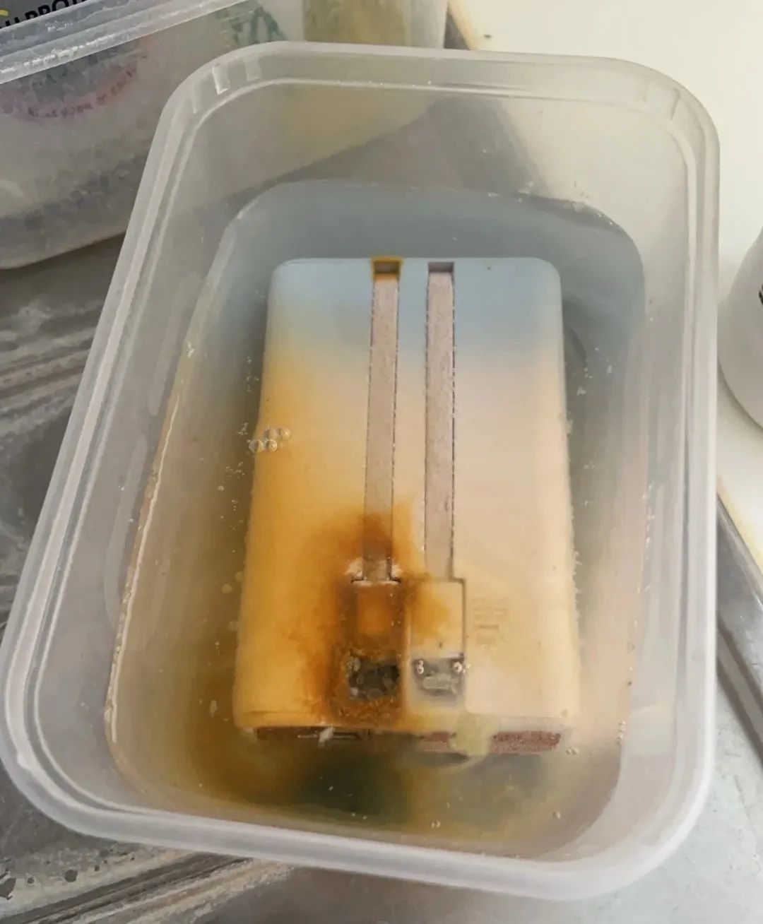 也有消费者了解到,可以把充电宝浸泡在高浓度盐水中使其失活等方式来处理,但浸泡过后被明显污染的盐水也让人充满担忧。