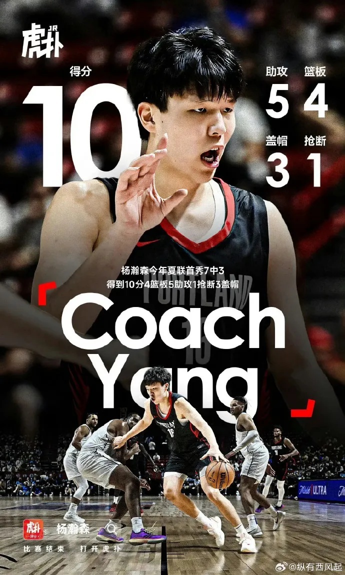 此外,杨瀚森夏联首秀7投3中,三分球3投1中,罚球4罚3中,拿到10分4篮板5助攻1抢断3封盖的全面数据!