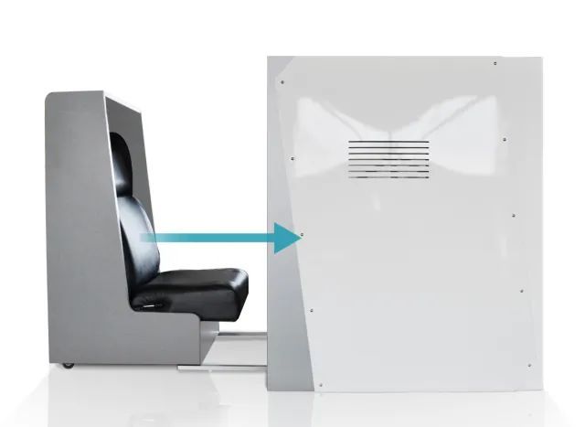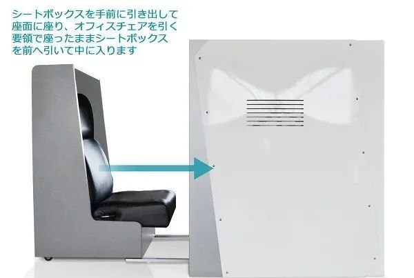 坐稳后再连人带椅滑进盒子内部,最后锁定位置,整个过程行云流水。