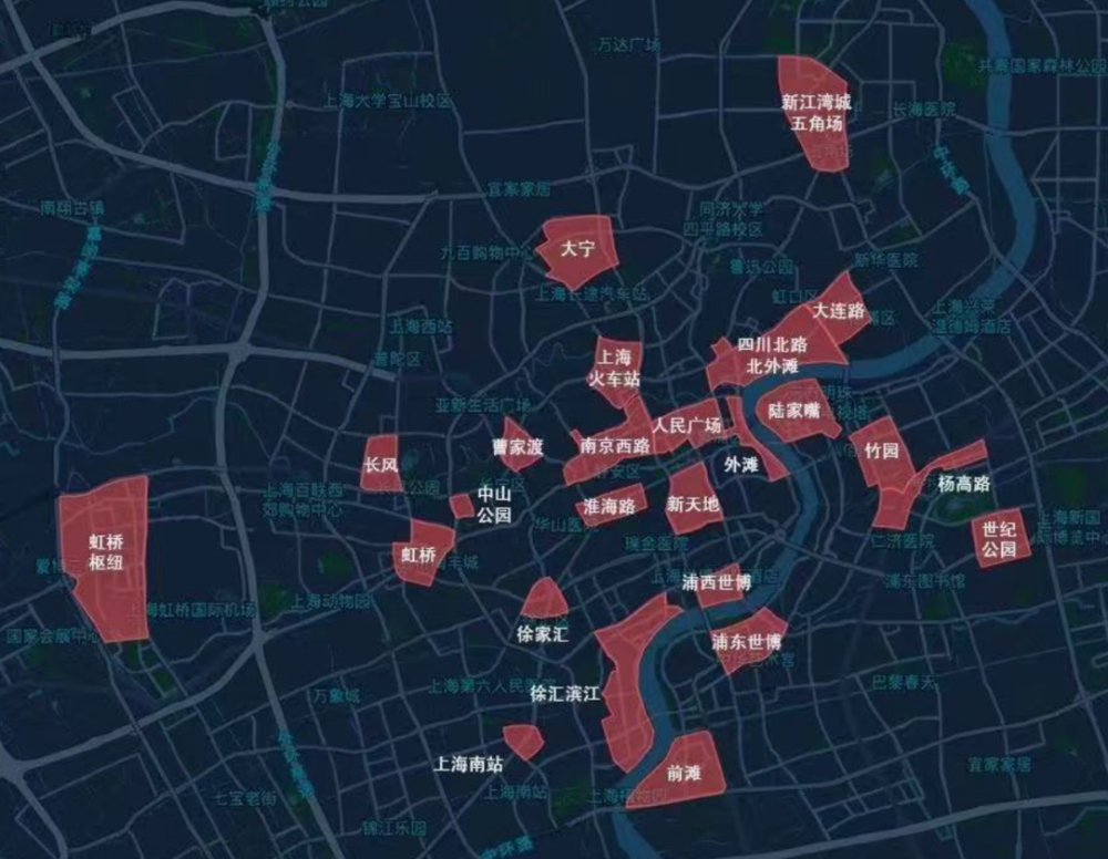 既有老牌的人民广场、新天地、陆家嘴,也有各种新兴商务区如北外滩、前滩、南滨江的崛起。