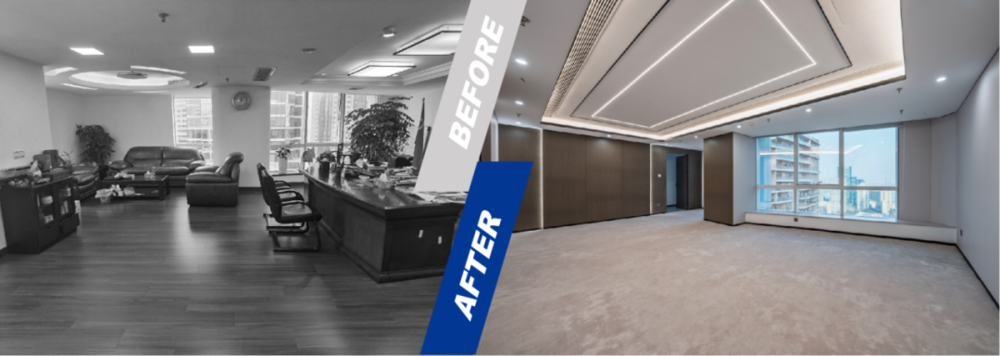 金穗大厦办公室前后改造对比图,图源龙湖龙智造