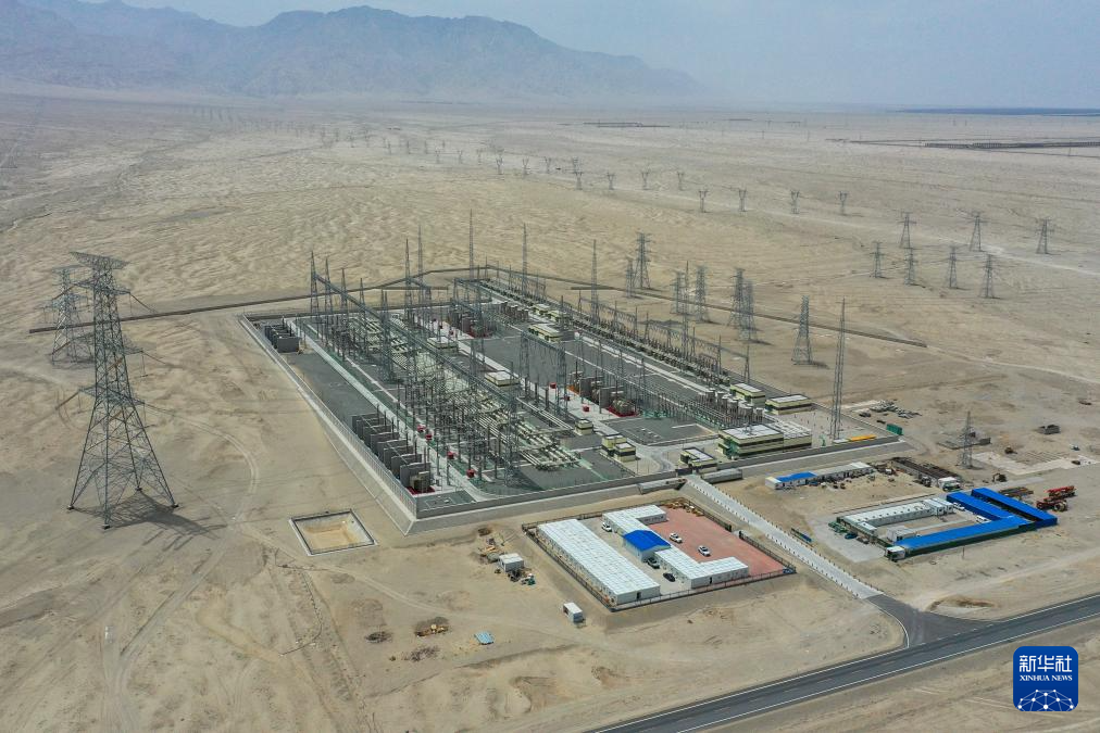 这是已经投运的新疆环塔里木盆地750千伏输变电工程若羌750千伏变电站(6月27日摄)。