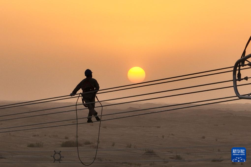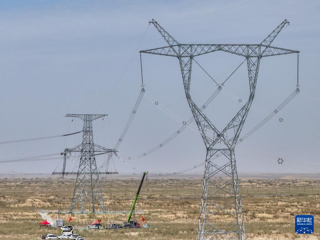 7月13日,在塔里木盆地南缘的新疆和田地区民丰县,随着牵引机将最后一段电线成功从183号铁塔拽至188号铁塔,标志着历时15年建设的环塔里木盆地750千伏输变电工程全线贯通,形成了一条围绕塔里木盆地的750千伏超高压输电环网。