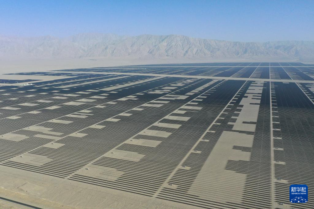 这是中国绿发新疆中绿电若羌400万千瓦光伏项目(6月26日摄,无人机照片)。