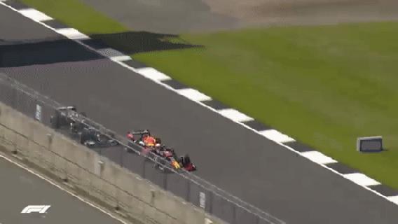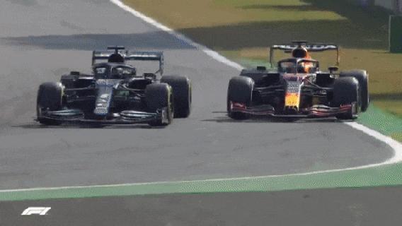 第二类的“同归于尽”,则介于意外与故意之间,往往发生于两名车手杀红了眼,互不相让的阶段。2021 年是当时效力于梅赛德斯奔驰车队的汉密尔顿,以及效力于红牛车队的维斯塔潘二人争冠的一年,迸发了“F1 两次世界大战”。
