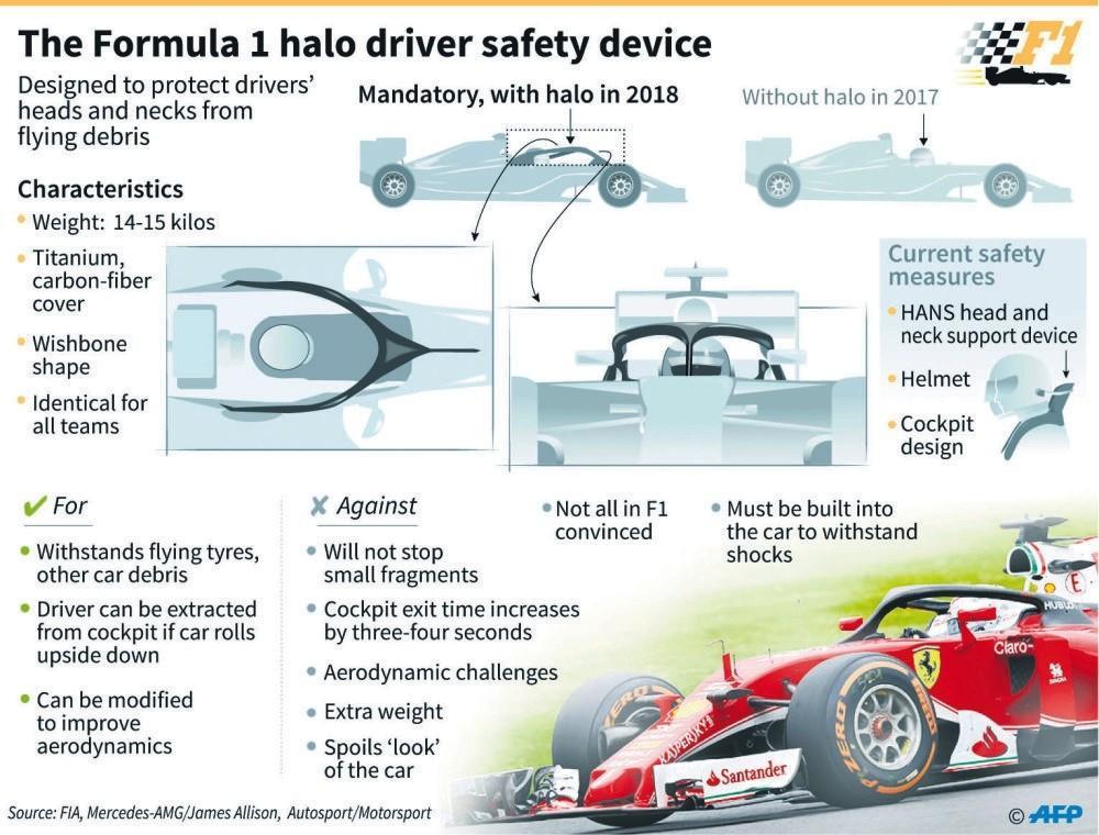 而随着比安奇的事故的哗然,终于催生并加速了Halo驾驶舱保护系统的研发和强制引入。Halo 俗称人字拖,是一个安装在驾驶舱开口上方的T形钛合金结构,由航空级的5级钛合金制成,重量为7公斤(现为 14 公斤),却能承受约12吨的静态负载,它旨在弹开或抵挡飞向车手头部的碎片和大型物体。尽管它有增加车重、遮挡车手视线等缺点,但自2018年强制引入以来,Halo已经在多次严重事故中被证明是拯救生命的伟大发明。