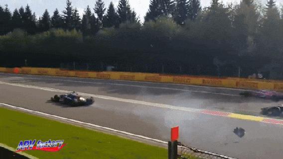 这就是比赛中常见的“赛道事故”,比第一类事故危险的地方在于,它的出现有偶然性,车手在竞争时对于后果没有预判。但在如今的 F1 安全体系下,总算没有酿成太严重的后果。