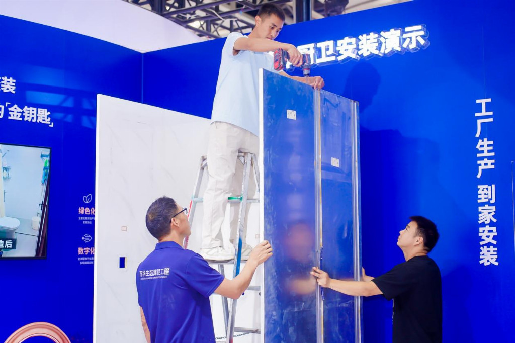 面对传统装修的痛点,近日举行的第27届中国建博会(广州)(以下简称“建博会”)上展示了焕然一新的解决方案。记者在万华生态集团的展位上看到,其将大量现场湿作业、手工工序转移到工厂进行标准化、工业化生产,制成高品质的预制部品部件(如墙面、地面、天花、厨卫等模块)。现场施工时,工人只需像“搭积木”一样进行快速、精准的组装与连接,最快7天就能装好一个家,而局部改造一个卫生间或厨房,仅需36小时。