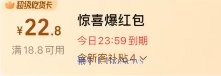 这意味着若订单金额刚好凑够22.8元,消费者无需支付费用,还能“倒赚”4元,实现“-4元购”。