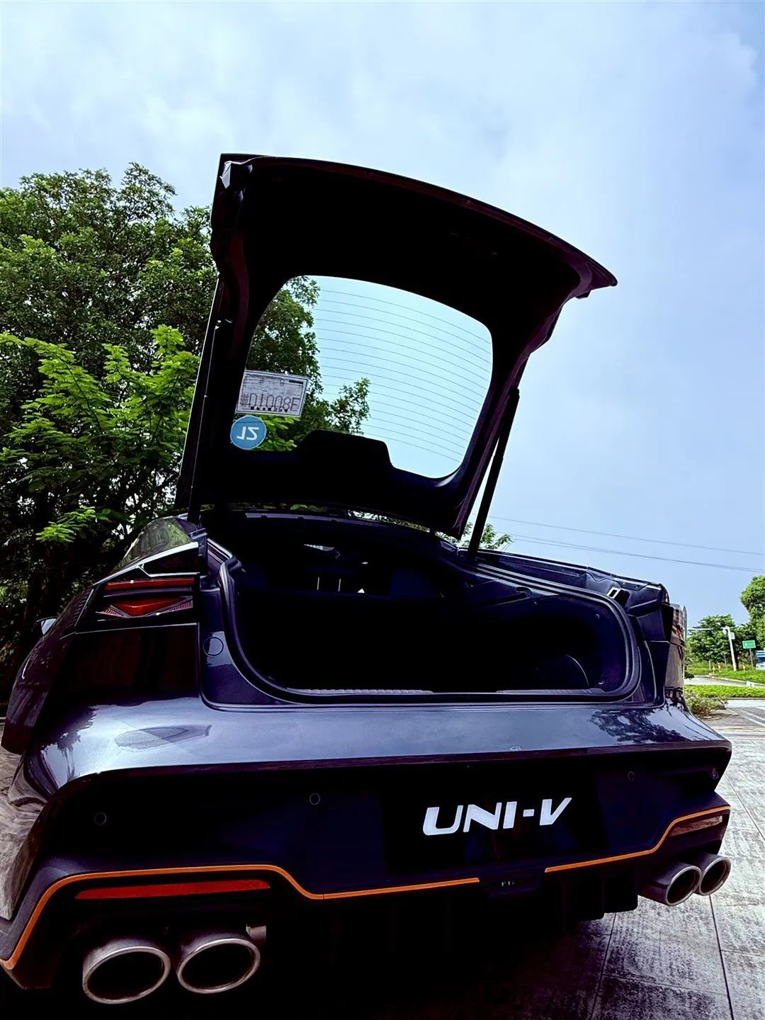 作为同级唯一掀背运动轿跑,第三代UNI-V全系标配电动掀背门,十分吸睛。大开口设计0.91m2,轻松容纳34寸行李箱。装载高度为705mm,相比主流三箱轿车500mm-600mm的装载高度优势明显;配备高度记忆、智能防夹及隐藏式后备箱按键,按两下半开、按一下全开,场景自由选择。