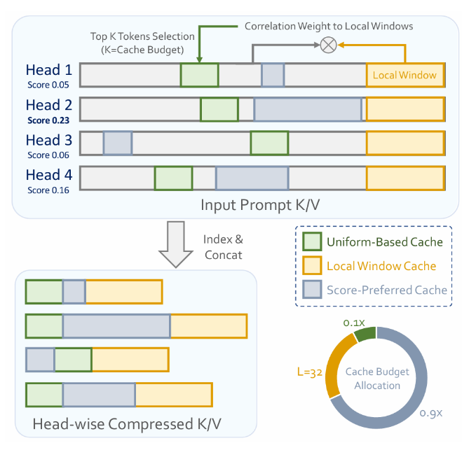 Uniform-Based Cache: 在所有注意力头之间均匀分配一部分缓存预算,用于保底防止头部信息过度丢失;