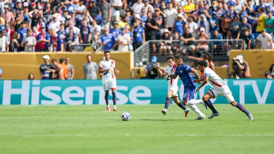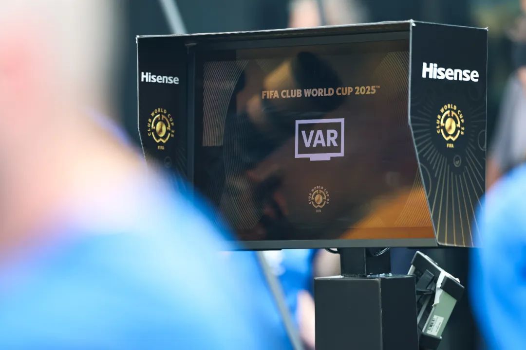 值得多提一下的是,除了周通,这届世俱杯上还有一个存在感更强的中国身影。观看过比赛的球迷应该都留意到上述三个转播画面都出现了同一个LOGO“Hisense”字样。本届世俱杯12个球场内和VAR裁判室所使用的VAR技术及产品,都是由中国企业海信提供。这也是继2024年UEFA欧洲杯之后,海信再次在世界顶级体育大赛中提供技术方案。