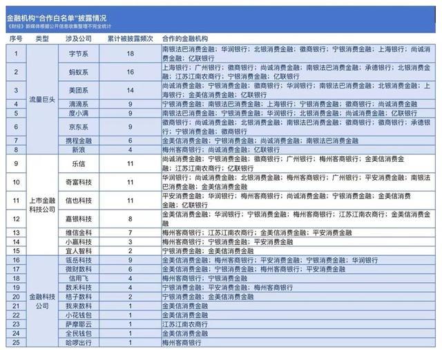 《财经》新媒体梳理发现,“助贷白名单”涵盖流量巨头、上市金融科技公司及中腰部平台等多类市场主体。其中,持牌金融机构更青睐具备流量优势的互联网巨头、合规性较强的上市金融科技企业以及行业头部平台。