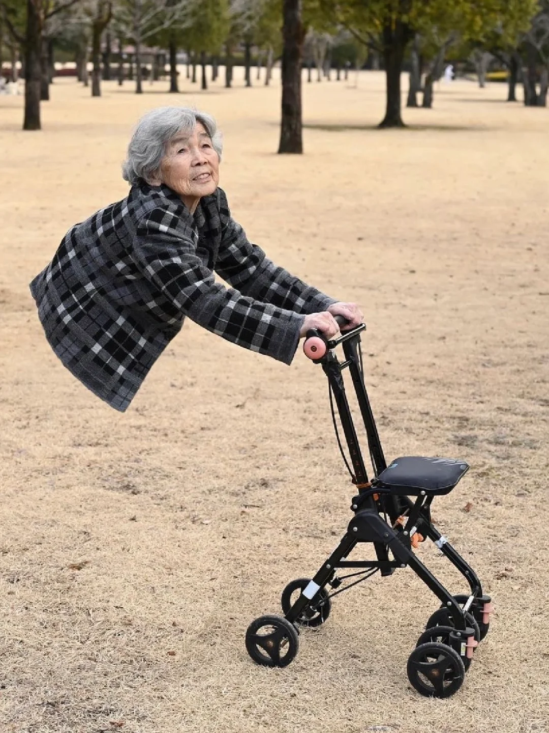 年纪越来越大,喜美子奶奶的行动力缓慢了不少,每次拍摄时,她都要先摆好三脚架,再一步步挪动到镜头前。