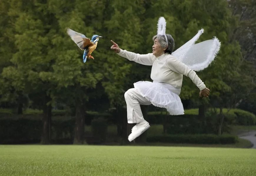 更加令人意想不到的是,西本喜美子在古稀之年才开始涉足摄影,这些照片从创意到拍摄再到后期,都是奶奶自己一个人完成的。